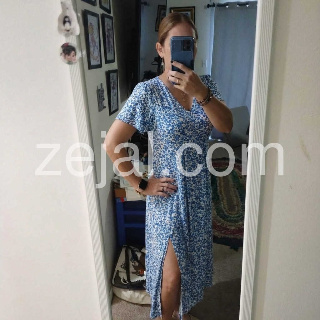 Such a gorgeous summer dress! The print is adorable and the length is just right for me. I love that it has a little slit on the side to keep it cool on hot days. True to size.