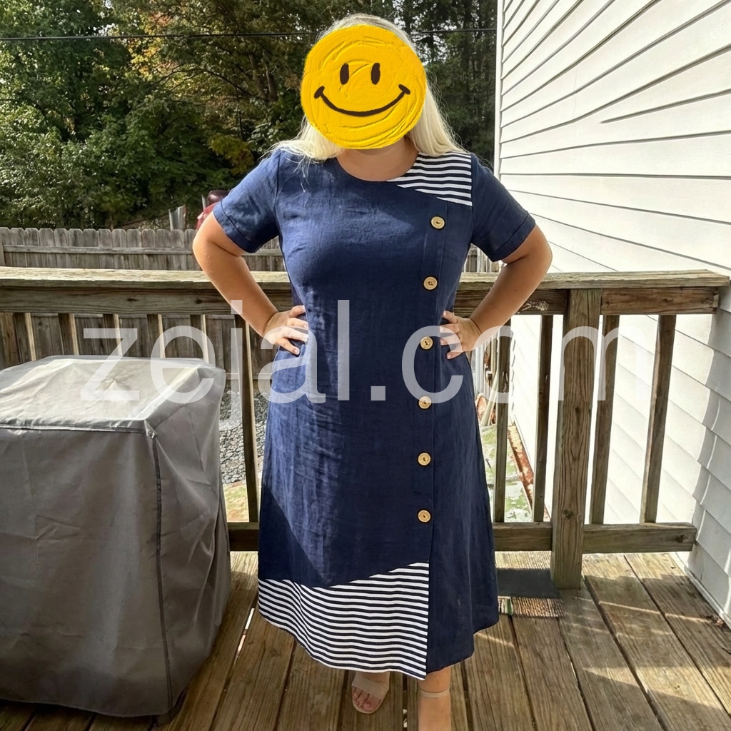 Very impressed with the quality of the stitching and the buttons. Often these kinds of dresses feel cheap, but this one has some weight to it while still being breathable for summer days. Love the nautical vibe.