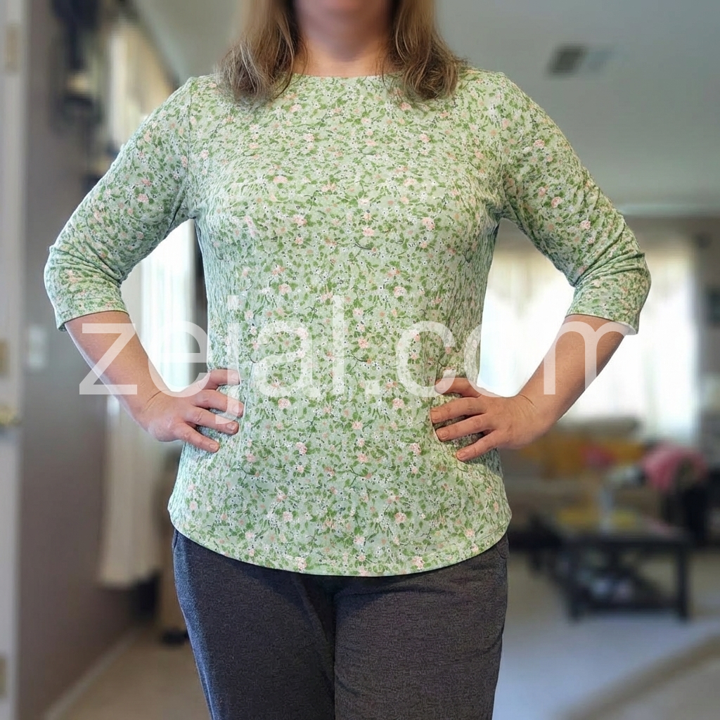 Absolutely love this top! The light green floral pattern is perfect for spring. It fits true to size and the material is incredibly soft. I have received so many compliments wearing it out.