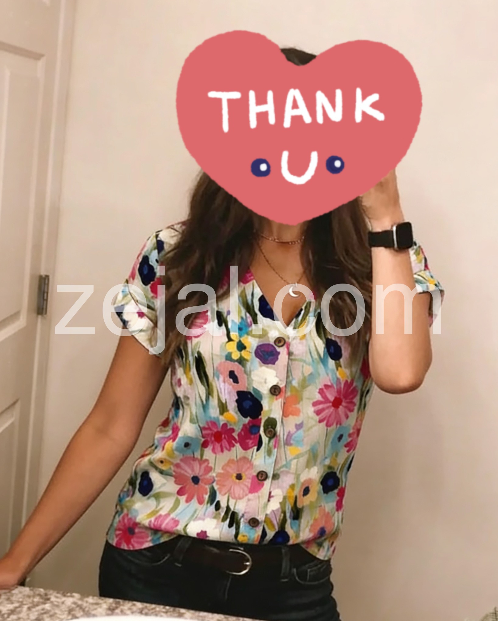 This button-down floral shirt is absolutely gorgeous. The buttons down the front give it a trendy vibe, and the fit is relaxed but still gives you a shape. I usually wear a medium and the medium fit perfectly.