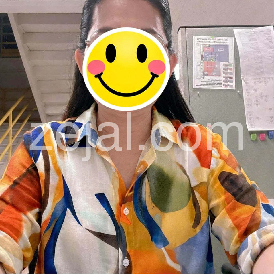 Fantastic summer shirt! It is really easy to style and the fabric feels like a high-quality linen blend. I love rolling the sleeves up for a casual daytime look. The print is bold, colorful, and makes me so happy.