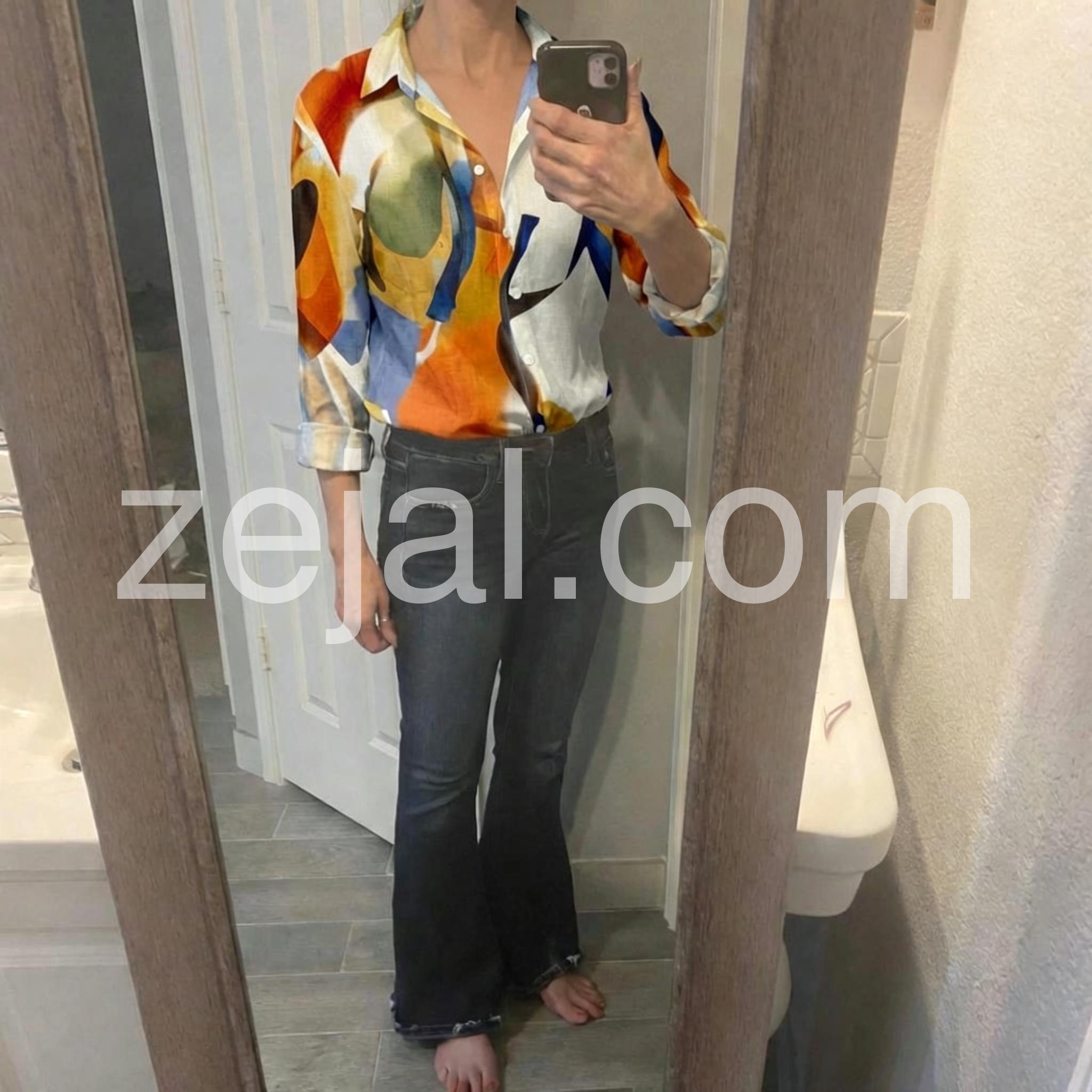 Make a splash in this Bold Abstract Print Button Down Blouse, a striking piece that turns heads with its dynamic, painterly design. Crafted from lightweight, breathable fabric—likely linen or rayon blend—this long-sleeve blouse features a vivid abstract print in rich shades of orange, navy blue, mustard yellow, olive green, and cream, evoking the energy of modern art. The relaxed fit and deep V-neckline offer a flattering silhouette, while the classic button-down front adds structure and ease. With rolled-up sleeves and a slightly curved hem, it’s perfect for pairing with denim jeans, white pants, or flowy skirts. Ideal for beach vacations, resort wear, or casual summer days, this blouse captures the essence of free-spirited fashion with a touch of artistic flair. Styled here against a sunlit beach backdrop, it exudes confidence and effortless style—just like the bold, vibrant looks found on Lulus.com. A must-have for anyone who loves unique prints, expressive colors, and fashion that feels like wearable art. Let this blouse be your statement piece for sunny adventures and stylish moments alike.