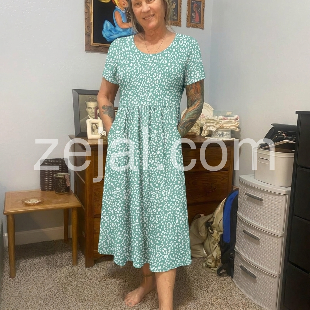 I am very picky about dresses, but this one exceeded my expectations. The elastic waist is forgiving and comfortable for all-day wear. The length is classy and the short sleeves are very flattering. It is a fantastic everyday dress.