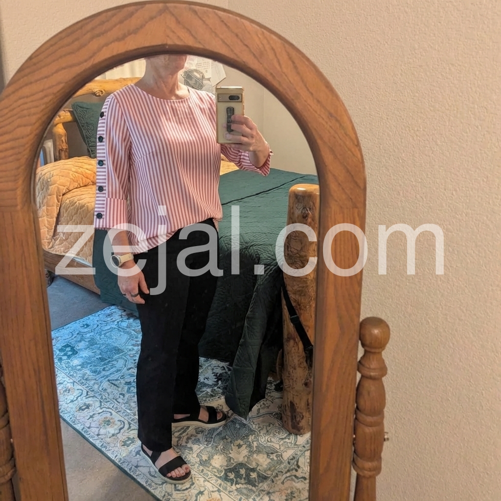 This is my new favorite shirt! It is stylish, comfortable, and the button accents make it stand out. Washes nicely without shrinking.