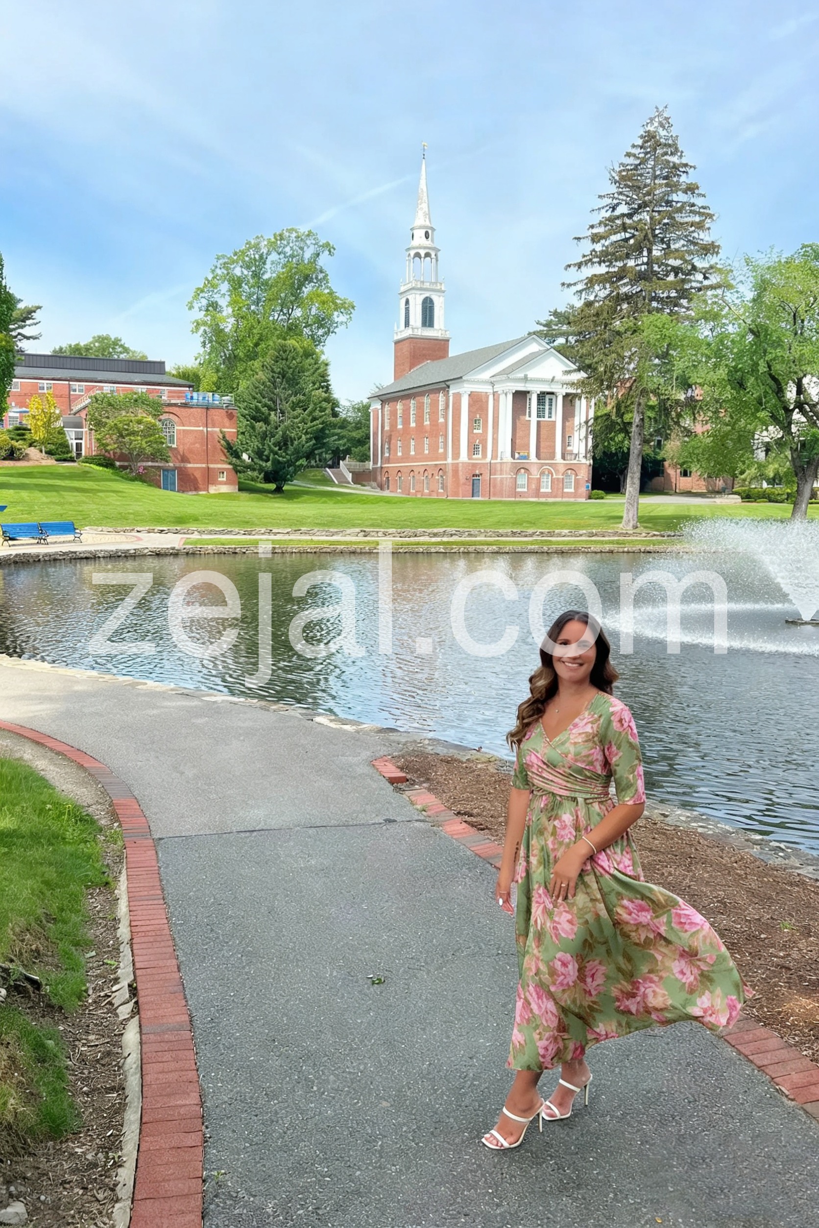 I absolutely love this dress! The sage green color with large pink flowers is so pretty for spring. Best part? It has pockets! The material is lightweight and flowy, perfect for a warm afternoon.