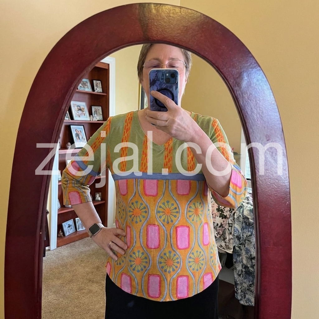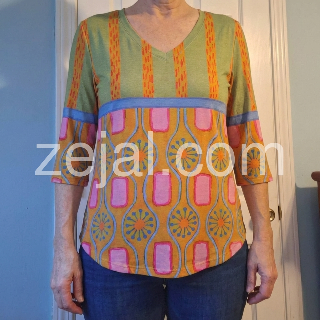 This shirt is great looking. The designs are interesting and the colors are sharp. I got a medium and while I think overall it fits and that the next size up may be too big, I do find the shirt is a bit snug in the hip area. I am hoping that if I lose those 10 lbs, it will fit perfectly as I really like the look of the shirt.