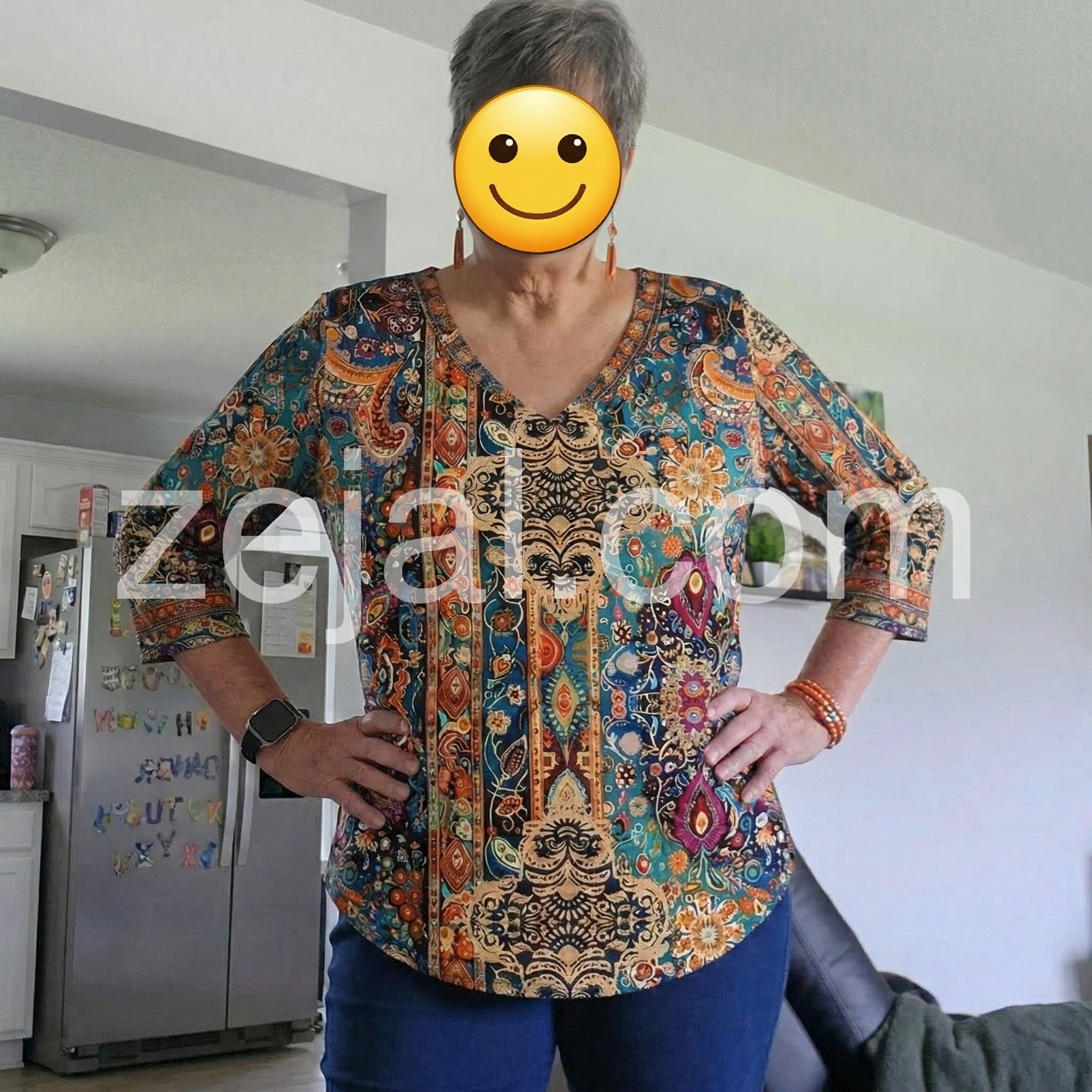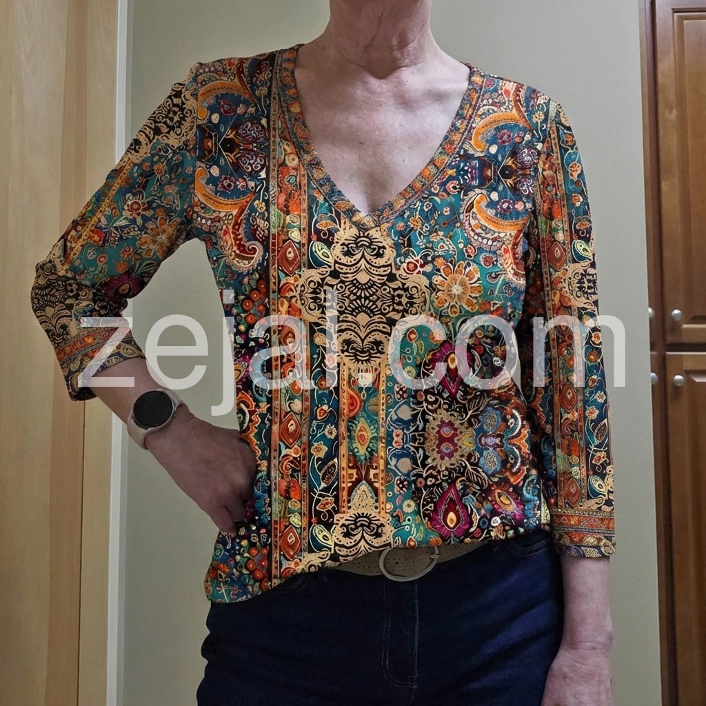 Embrace effortless elegance with this boho-inspired 3/4 sleeve top, featuring intricate printed patterns that capture the essence of free-spirited style. The relaxed fit and flowing fabric provide all-day comfort, while the extended sleeves offer versatile layering options for any season. Perfect for creating understated, artistic looks that transition seamlessly from casual outings to weekend gatherings. A wardrobe essential for those who appreciate thoughtful design and timeless bohemian aesthetics.