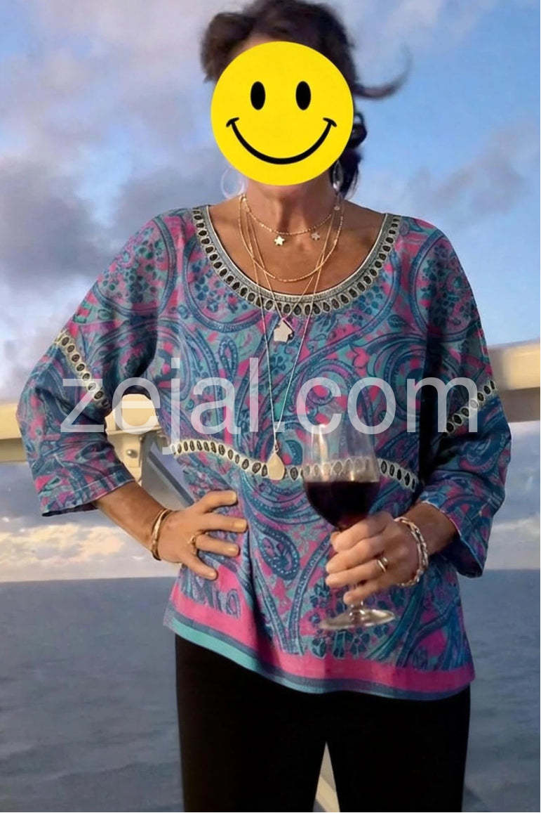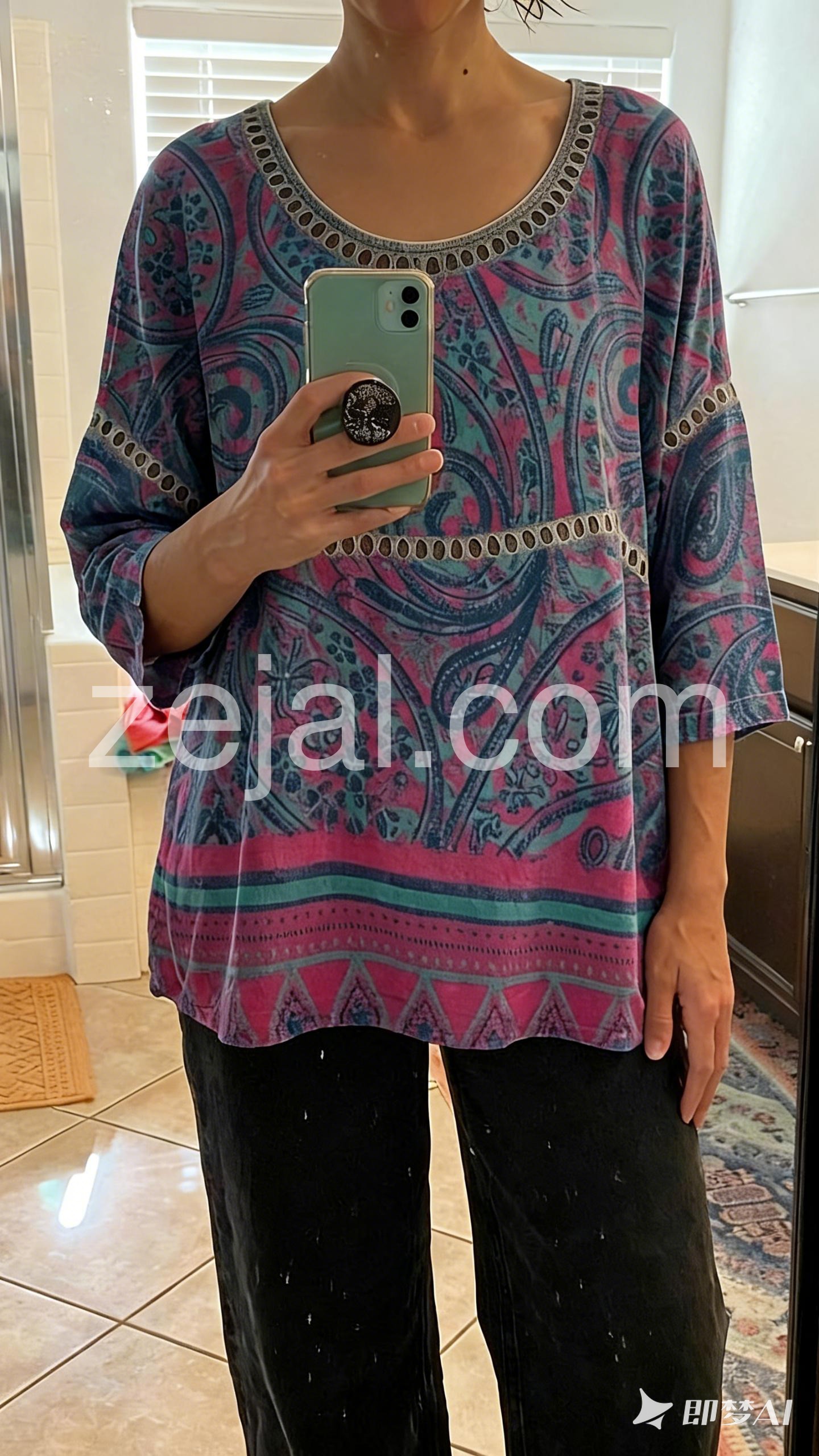 This top is a dream for casual weekends. The intricate pattern draws the eye in, while the soft fabric looks incredibly comfortable. I love how the hem falls below the hips and the neon pink accents give it a playful pop. Will absolutely wear again and would recommend to friends!