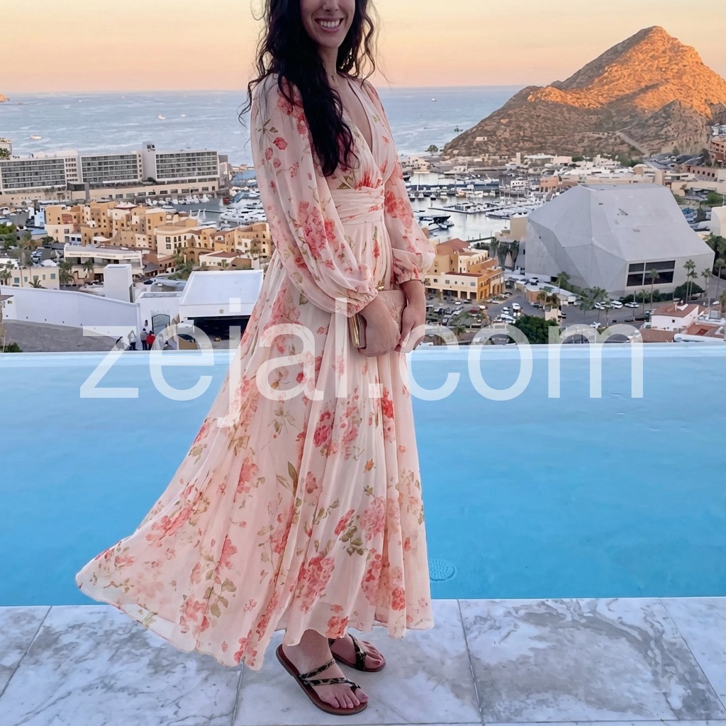 This dress is stunning. Quality material and extremely flattering. I bought a size M and I am usually somewhere between a size 8 and 10 with a 32dd on top. It’s even more vibrant in person. The material is lightweight but not see-through, perfect for summer. It felt comfortable enough to wear all day but nice enough to wear to a wedding or dinner date.