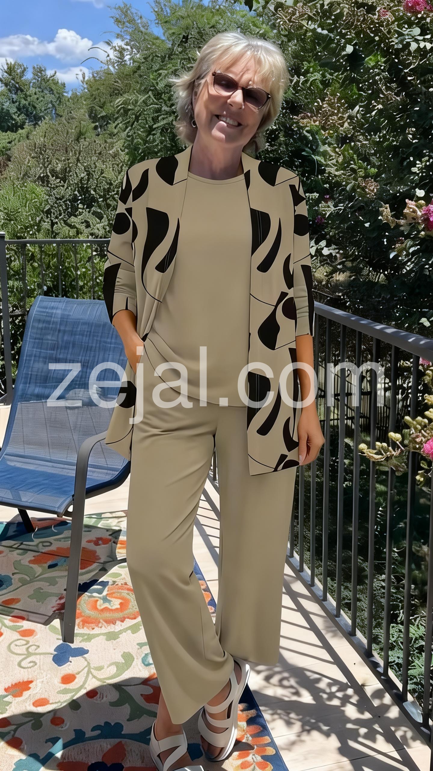 Absolutely love this two piece set! The material is incredibly soft and drapes beautifully. I wore it to a work conference and felt so put together but comfortable all day. The abstract pattern on the jacket adds the perfect amount of flair. Highly recommend!