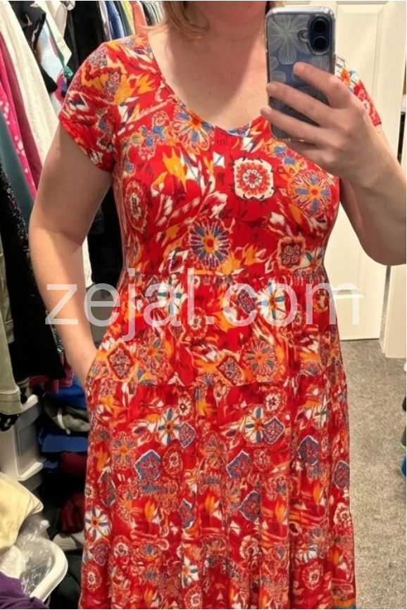 Absolutely love this dress for my summer vacation! The fabric is incredibly lightweight and breathable, perfect for hot days. The red color is vibrant and the bohemian pattern is even prettier in person.