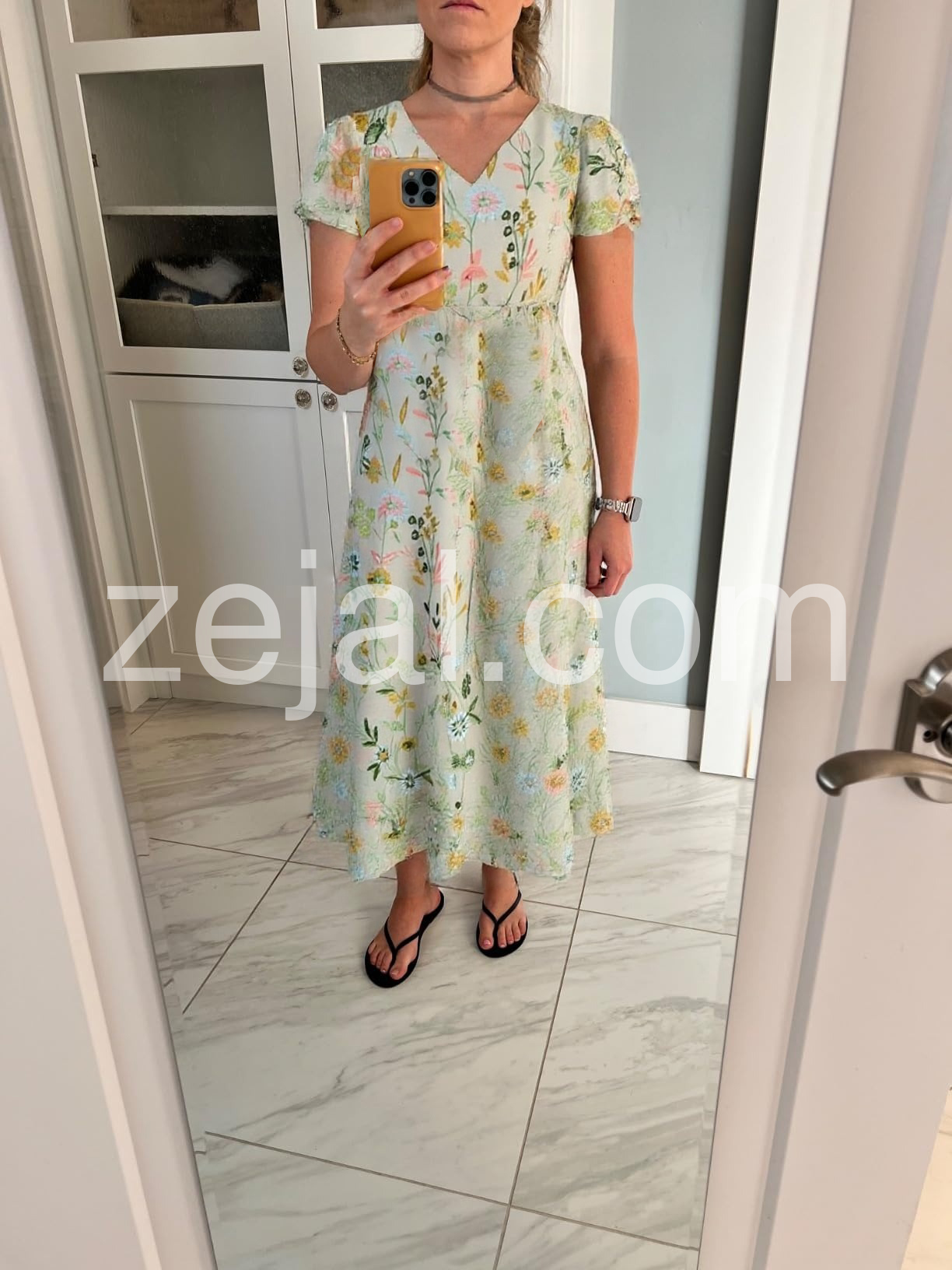 Bought this for a garden tea party and it was the perfect choice. The delicate flower pattern is gorgeous. I can see myself wearing this to a baby shower or even a nice dinner out. Highly recommend!