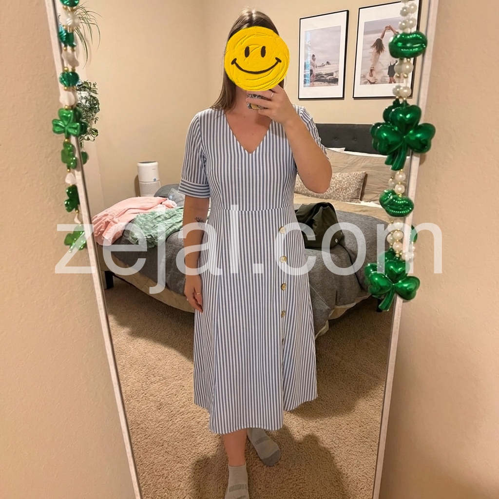 As a curvy woman, I am always looking for dresses that flatter my shape. The vertical stripes on this dress do wonders! It flows beautifully over the hips and the pockets do not add extra bulk. I feel very confident wearing it.