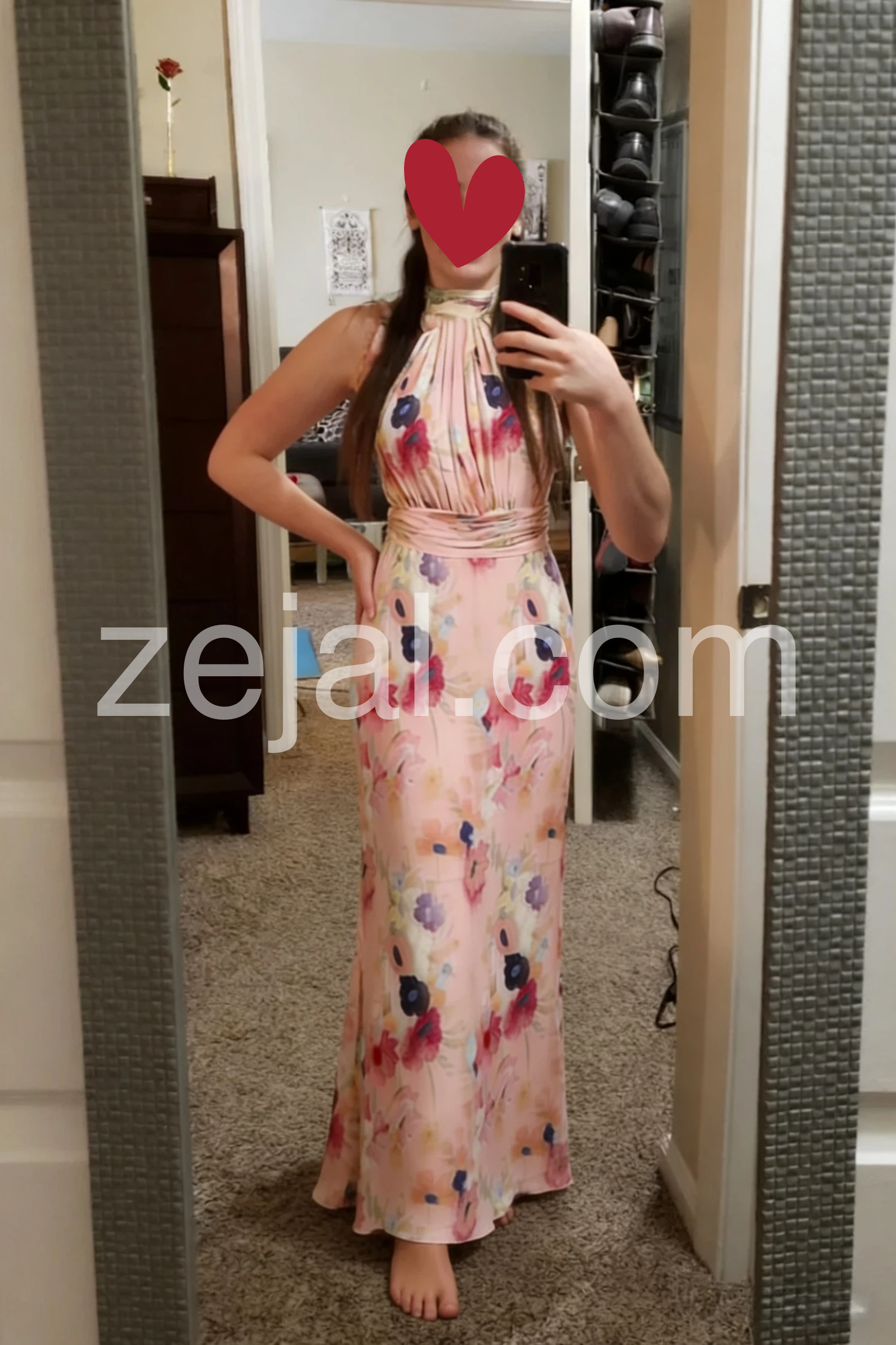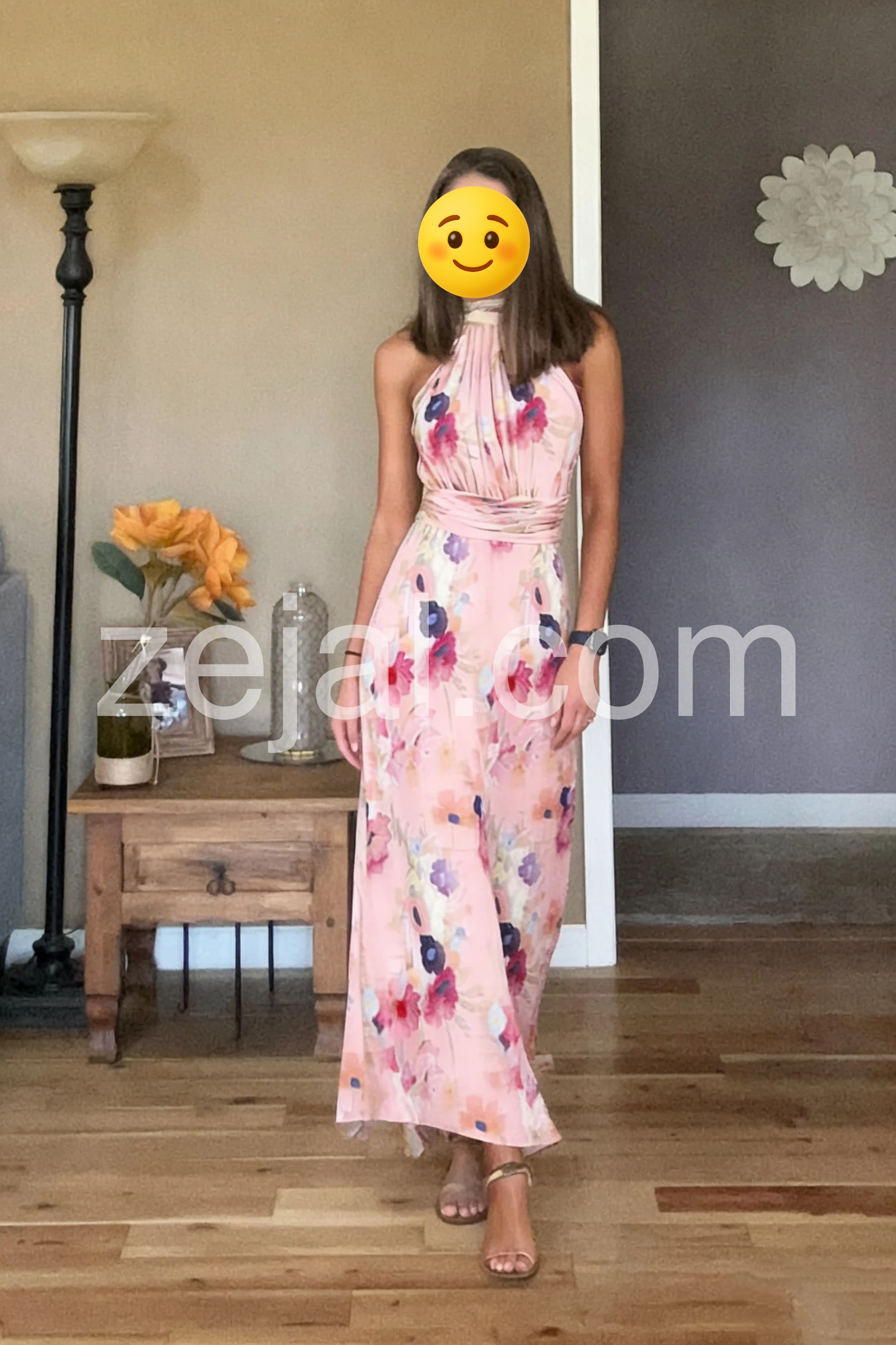 Wore this to a spring wedding and got so many compliments! The material is surprisingly high quality and flows beautifully when you walk. The halter neckline is very flattering.