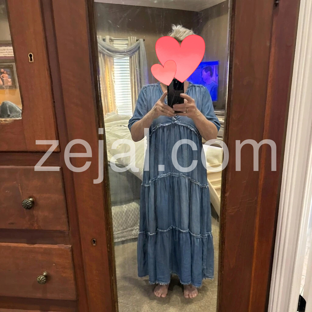 This denim dress exceeded my expectations. The layers are really well made and the ruffle design adds a nice shape. It drapes beautifully and feels comfy and roomy, so it’s easy to wear all day. I’ve already gotten compliments and I’d definitely recommend it.